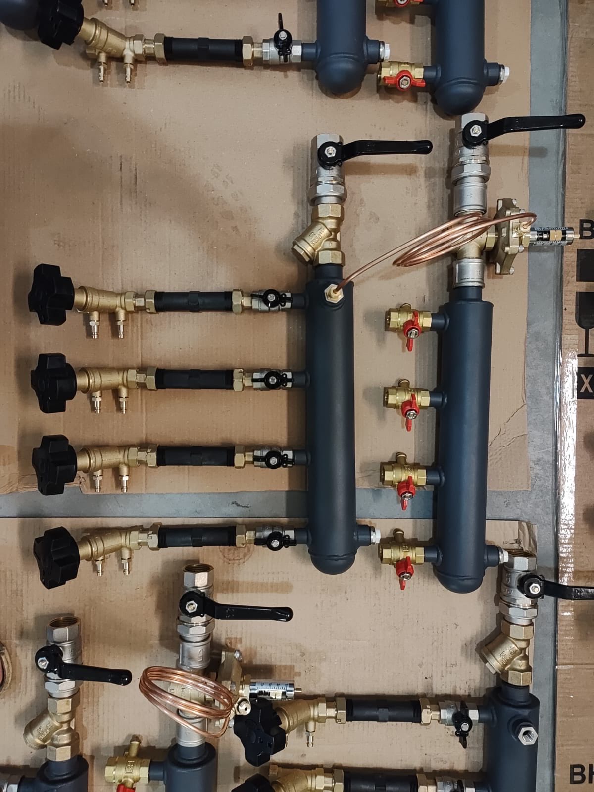 Этажный коллекторный узел изготовлен из углеродистой стали с окрасочным полимерным покрытием, что обеспечивает его долголетие и надежность. В дополнение, узел может быть оснащен приборами учета расхода и манометрами для контроля параметров.