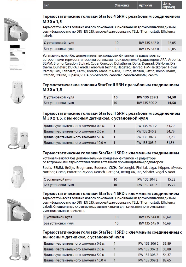 Термостатические головки StarTec II SRH с резьбовым соединением M 30 x 1,5